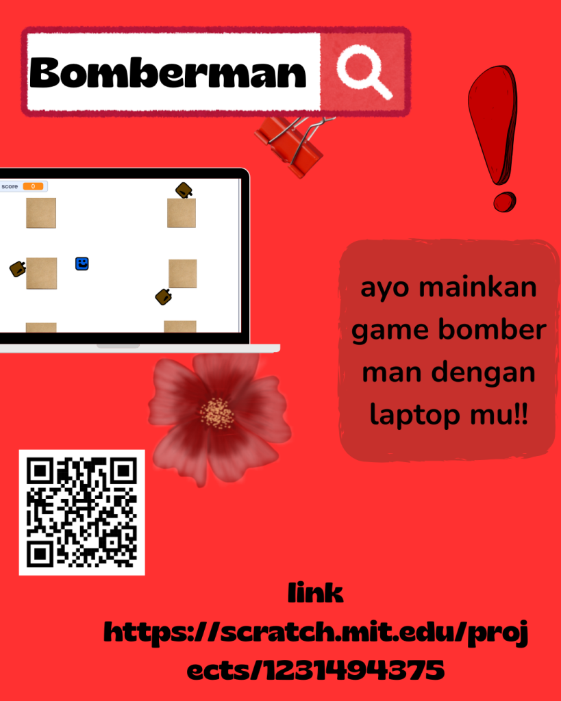 This Scratch project recreates a Bomberman-style game where players place bombs to break walls and defeat enemies while navigating a maze. The project teaches basic game logic such as grid movement, timers, explosions, collision detection, and strategic planning.