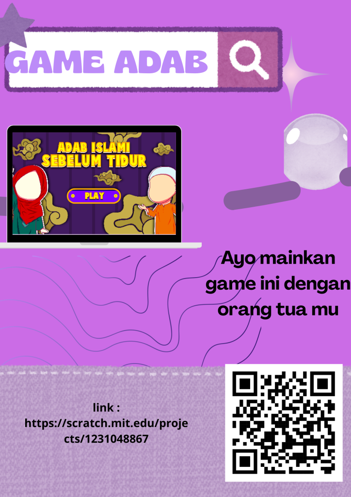 This Scratch project creates an interactive game about Adab, where players learn and practice good manners such as respecting teachers, helping others, and speaking politely through simple challenges, quizzes, and decision-making scenarios.